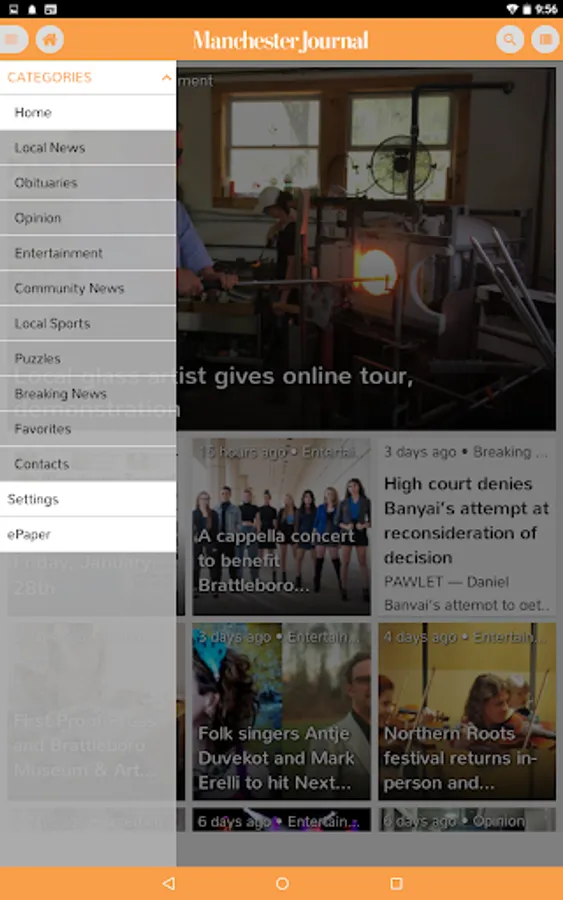 Introducing The Manchester Journal eEdition app for Android devices. This App provides access for eEdition subscribers to an exact replica of the printed Manchester Journal newspaper on Android devices. Using the touch interface, subscribers can easily navigate all the sections, articles, photos and advertisements exactly as they appear in the print edition.