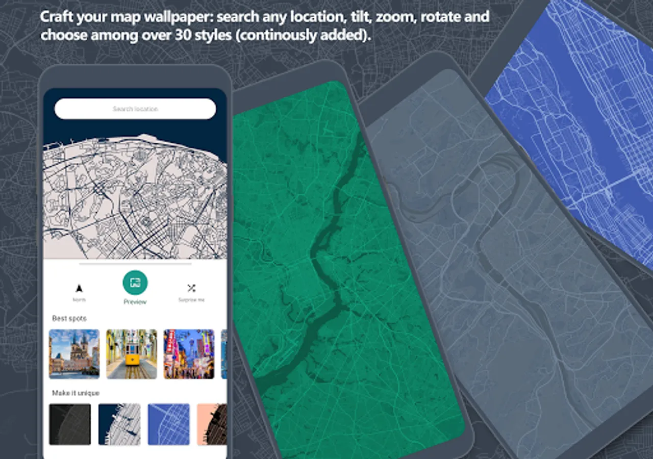 If you are out of ideas you may want to look at our special best spots section that features cool places like New York, Toronto, Amsterdam and more, tap save and you've got yourself a new map wallpaper straight away!
