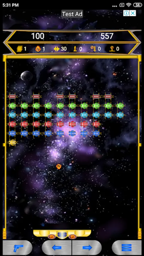 Mines come in different types and have different strengths. Depending on the type of mine, it is sometimes necessary to hit it several times to destroy it. Different types of mines also give a different number of points for their destruction. The type of mine can be determined by its color.