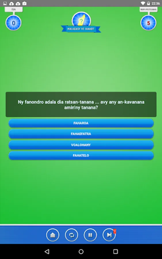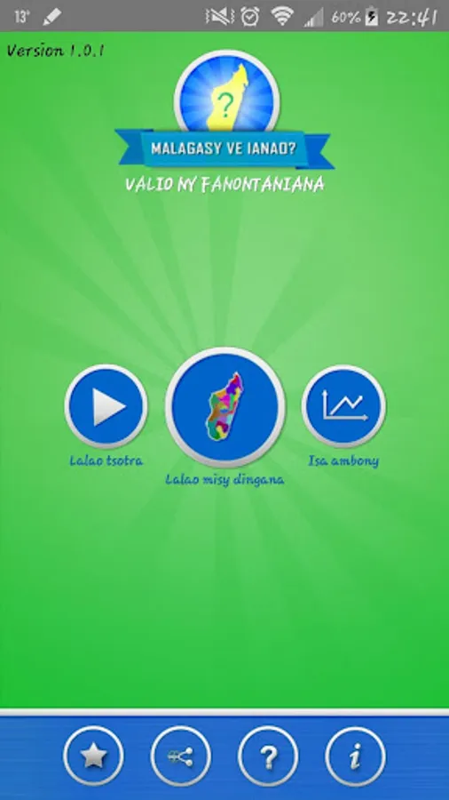[FR] "Malagasy ve ianao?" is an application that allows you to test your knowledge on Madagascar. It is intended for all lovers of Malagasy culture.