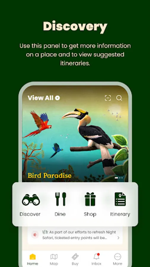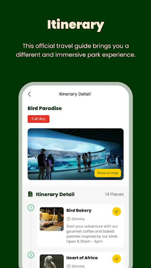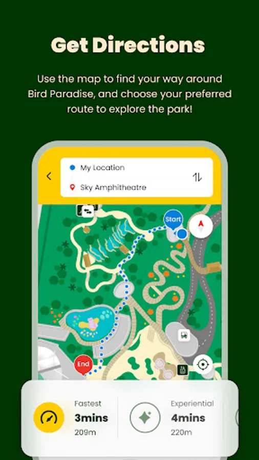 Use the app to find your way around our newest wildlife park, Bird Paradise, and plan preferred route to explore the park! Wayfinding for other parks to come.