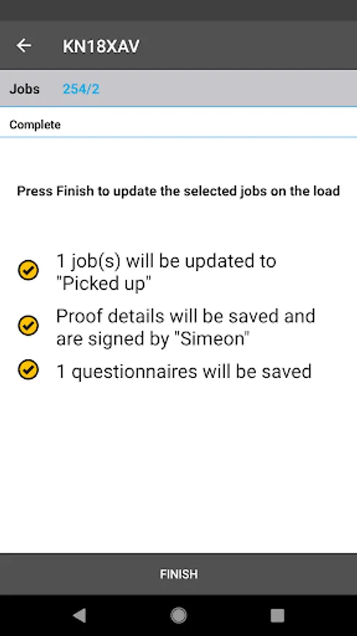 • Select non-conformance codes to add to the job details and capture images using the device camera as evidence of non-conformance jobs. These details are then updated in the Mandata TMS and Web Services Customer Portal