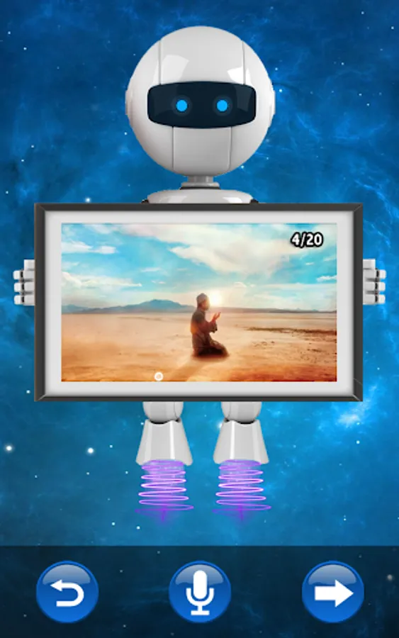 Test your Arabic pronunciation with the microphone button and earn golden stars as a reward.