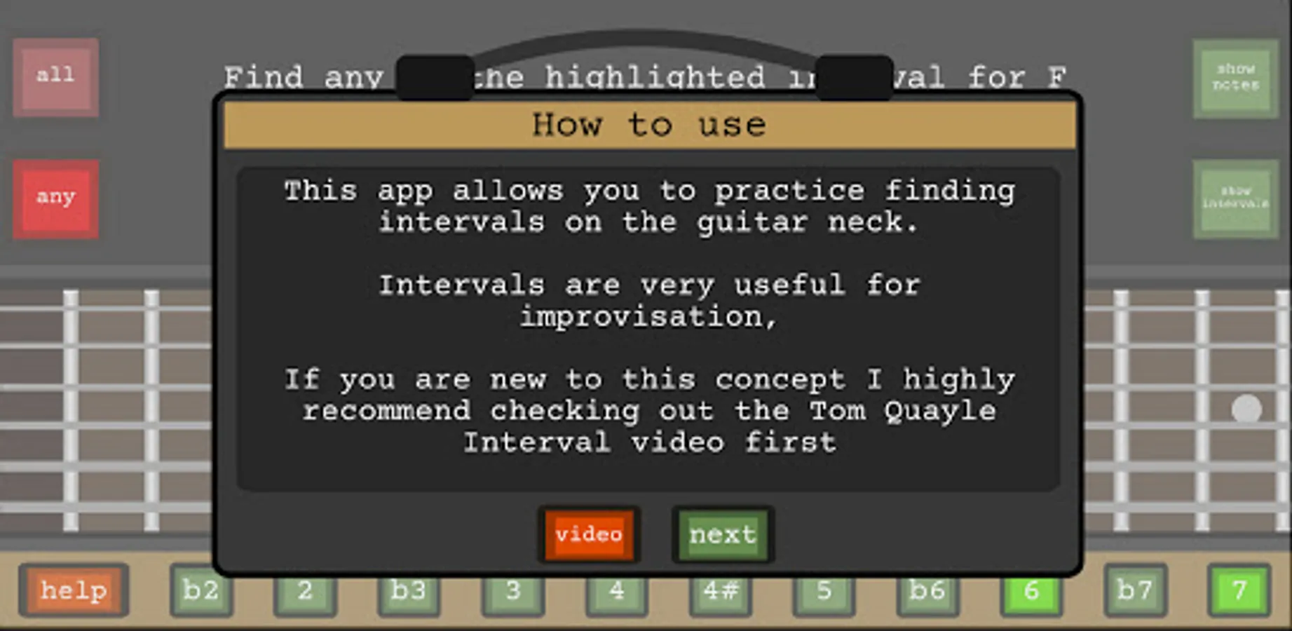 Inspired by the Tom Quayle interval method, 'Guitar Interval Trainer' is a useful way to learn and practice all the interval shapes.