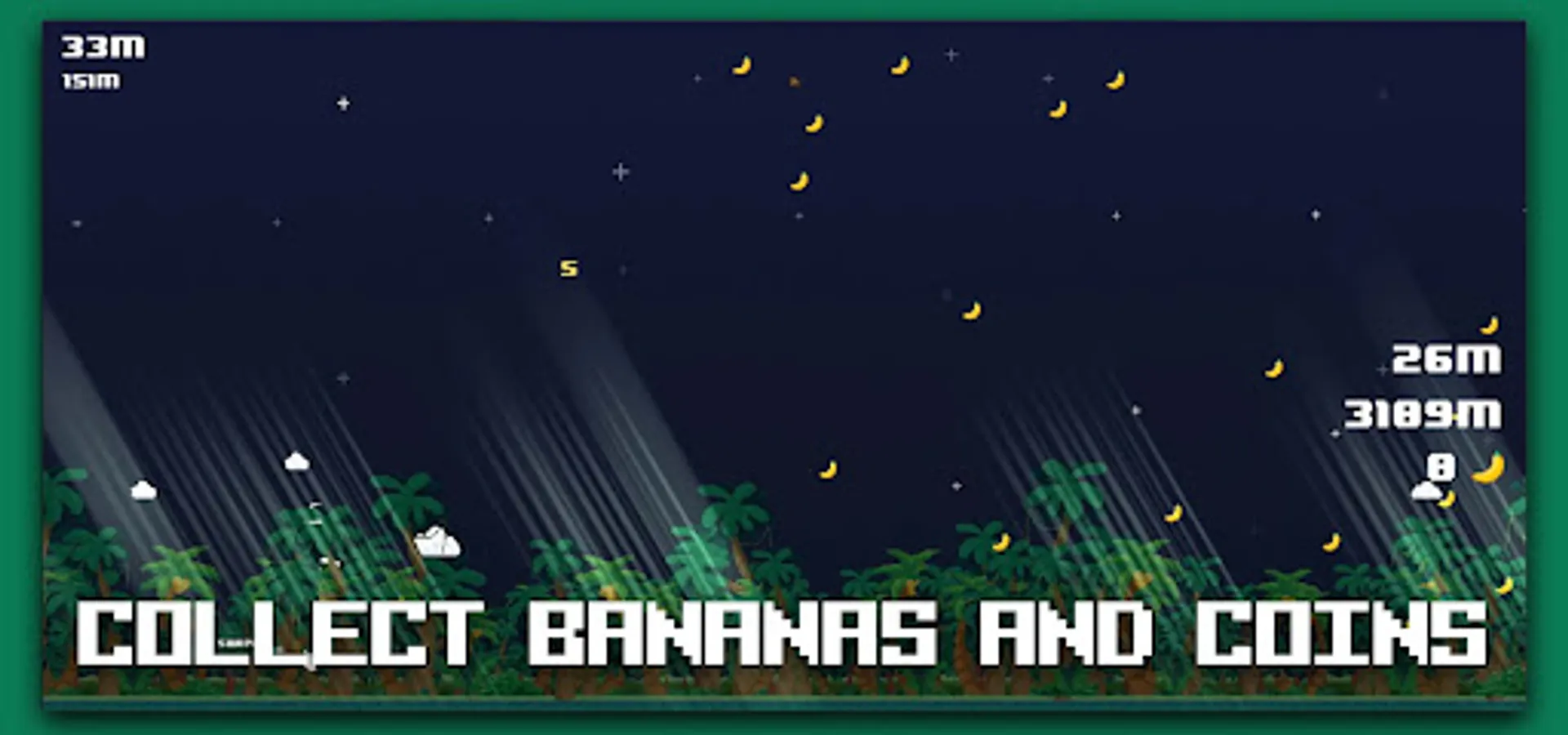 Fly as far as you can and collect bananas and coins worth real Bitcoin along the way.