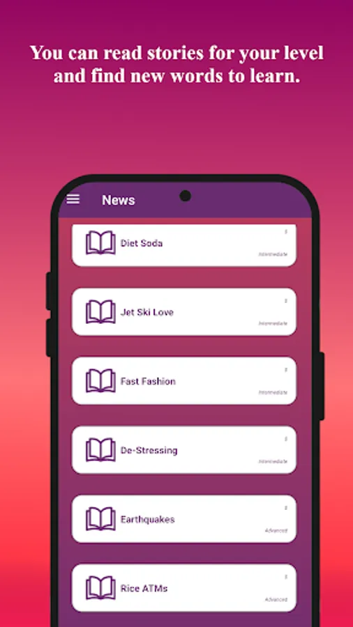 📖 Reading Comprehension: Improve your reading skills with a library of articles, stories, and news updates. Also you can use word cards and dictionary.