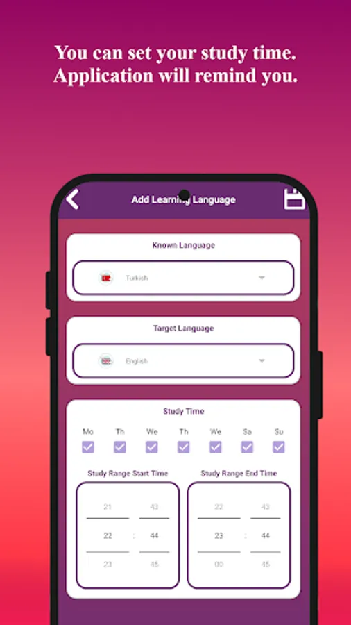 🌟 Customizable app: You can learn words and different languages at the same time. You set your study times and app will remind you.