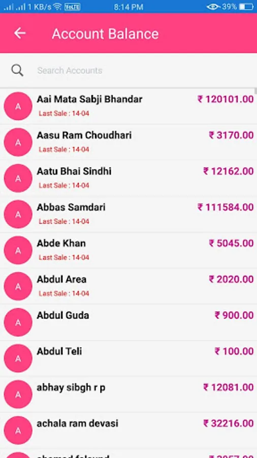 Just Tap Customer name and see its Ledger @ the speed of thoughts with cumulative balance and bills due information
