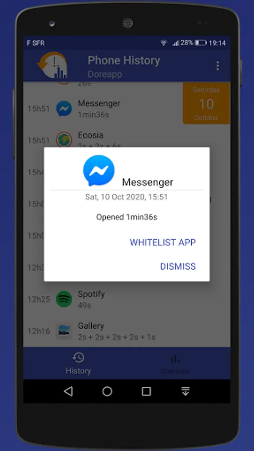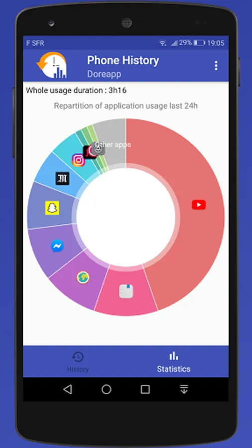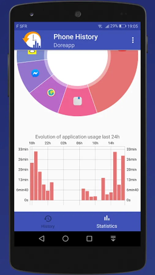 - stats upon the whole time you spent on your phone / on a spicifical application