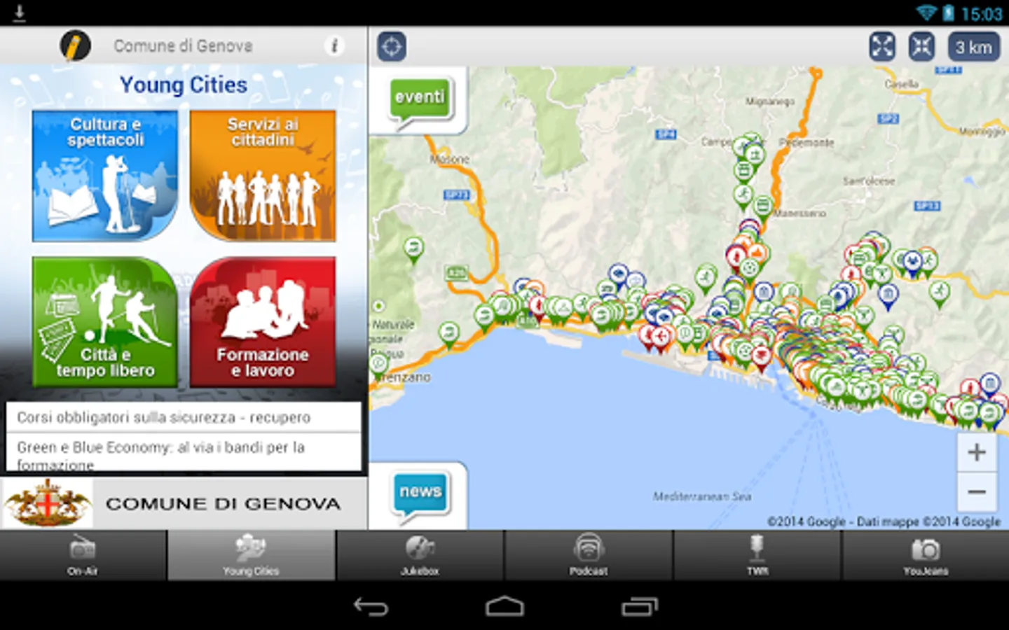 With the application Jeans Radio, the radio made by one hundred radio, live listeners the most fun and interesting radio creations made by young people from all over Italy who, with their loads of fun and originality to contribute the largest experiment in participatory radio made by students.