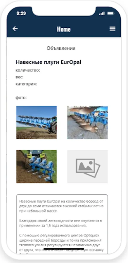 On the platform, you can buy or post an ad for the sale of agricultural products
