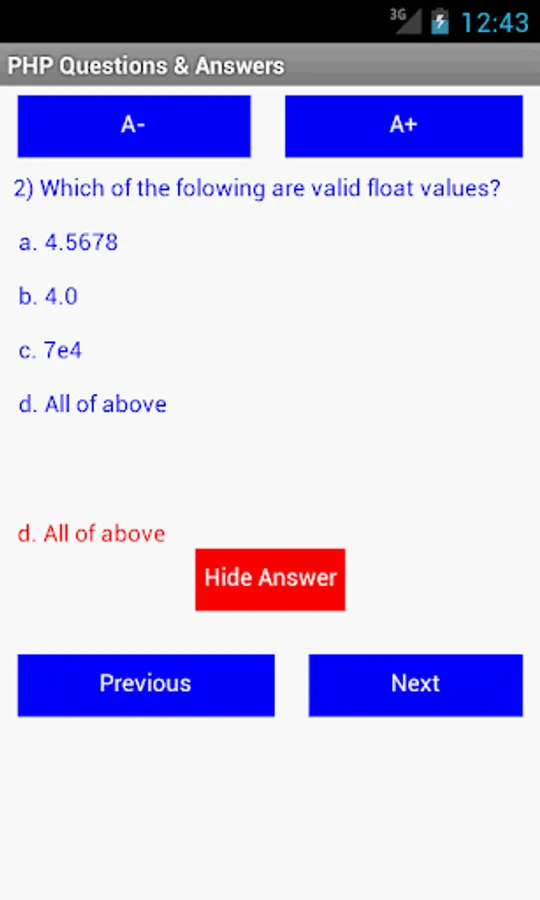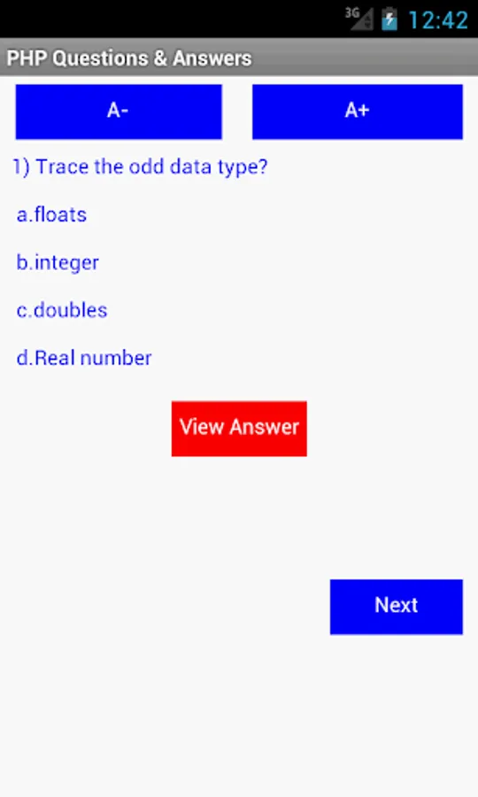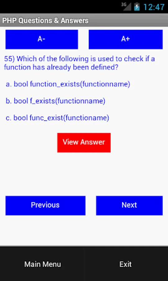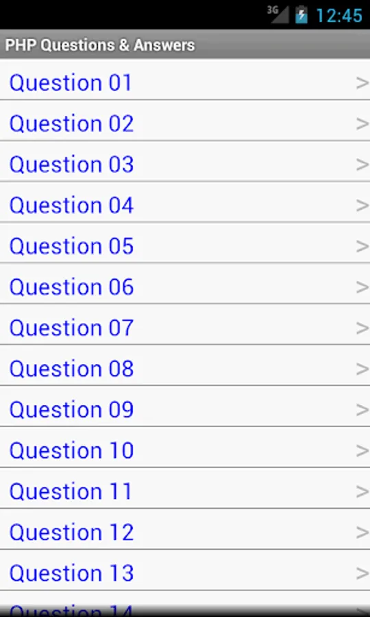 PHP Questions & Answers application is built for PHP learner, it give you good preparation for exam, interview, certification etc. This application contain more than 50 Objective Questions and Answers for practice.
