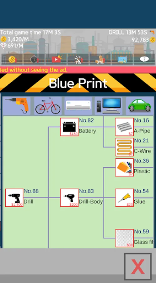 1. The Factory Line Game is to make intermediate products as base materials and 5 final products.