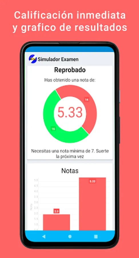 In addition, the application records all your attempts in each of the tests carried out in the different categories. You will be able to consult your grade point average and your results graphically, which will allow you to evaluate your progress.