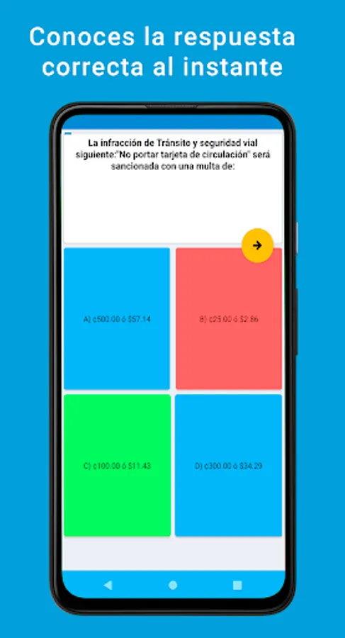 Get ready to obtain your youth, private, light and motorcycle license efficiently and successfully with our application. Study and master all the areas that will be examined by the VMT, including the Land Transportation Law, the General Traffic Regulations and Road Signage. All of our questions have been carefully selected from the Road Safety Instructions and are presented in the same format and order in which they will appear on the actual exam.