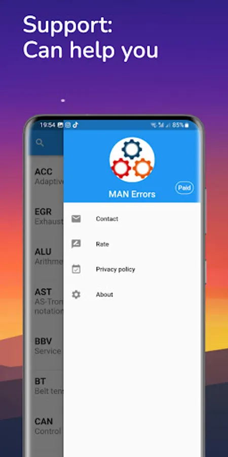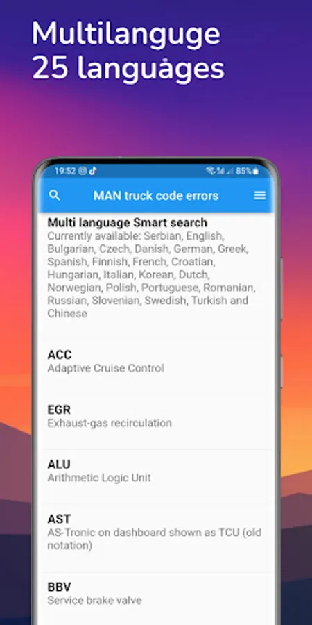 Our app supports all MAN trucks and buses with digital dashboard, including MAN TGA, MAN TGX, MAN TGM, MAN TGL, and MAN TGS fault codes. Please note that the app doesn't support MAN ships.