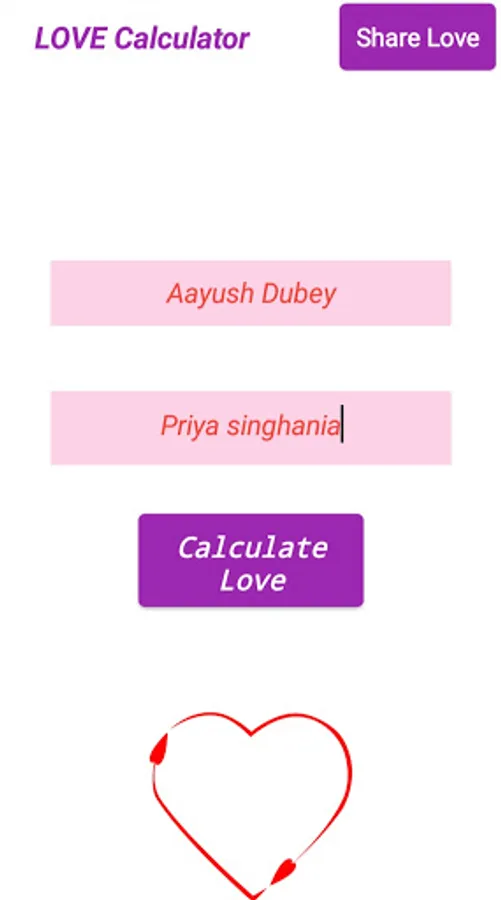 The Love Calculator is an effective way to get an impression of how bright the chances of stability & mutual harmony existing in a relationship between two people, find out what are the chances of you and your dream partner getting close to each other. You and also use True Love Calculator for fun and joy with friends and share love percentage to others. love calculator is love test and friendship test calculator for boys and girls .Both males and females, young and old can use our me and you love calculator.
