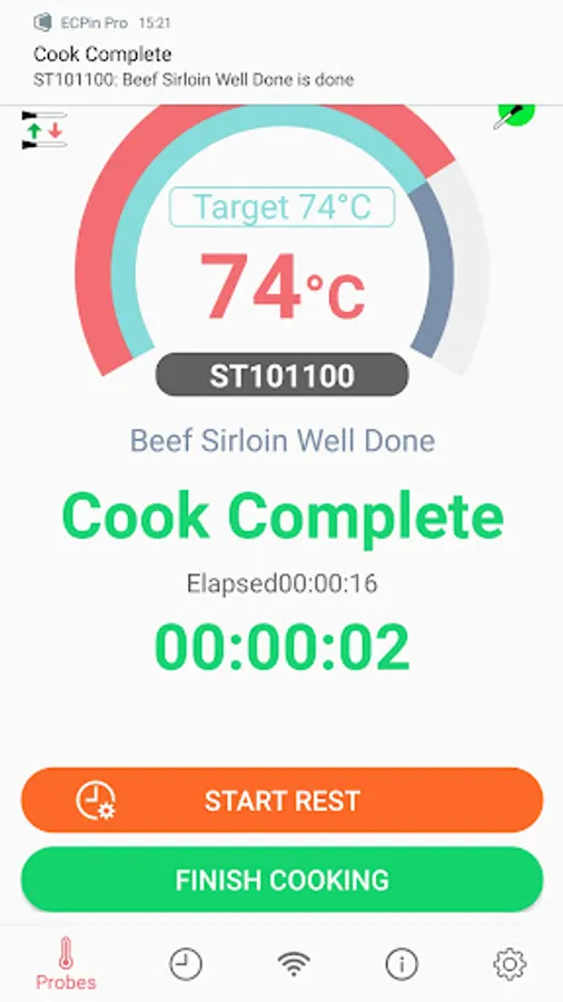 ECPIN is designed for home cooks who appreciate the fine art of cooking and values precise cooking results. Simply insert ET180 into the meat of your choice, select the desired cooking method and doneness on the app, and let the oven and ET180 do the rest for you. You will be notified on your phone when it’s done.