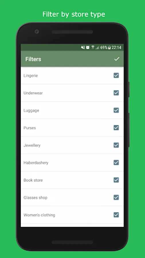 - Filter stores: You can filter stores by their type of product to make it easier for you to find what you want;
