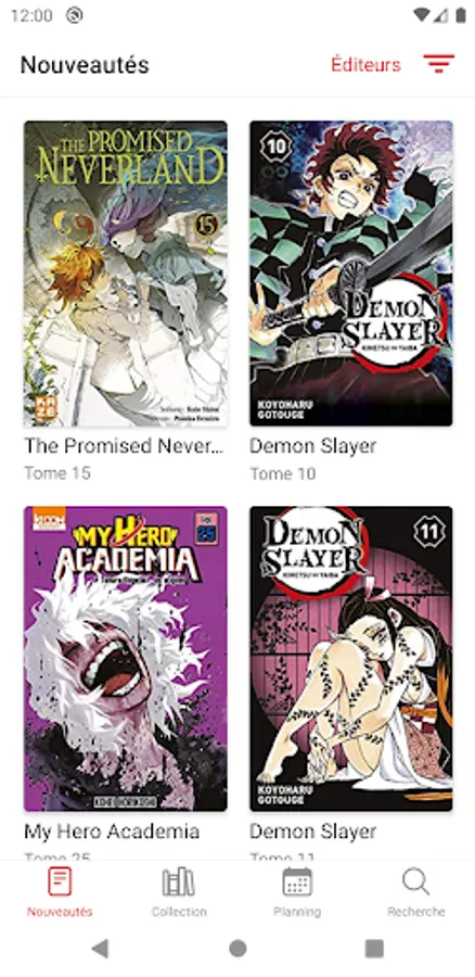 The application also offers the schedule of all Manga releases, and a personalized schedule according to its collection: At a glance you are aware of all the releases of the Mangas you follow!