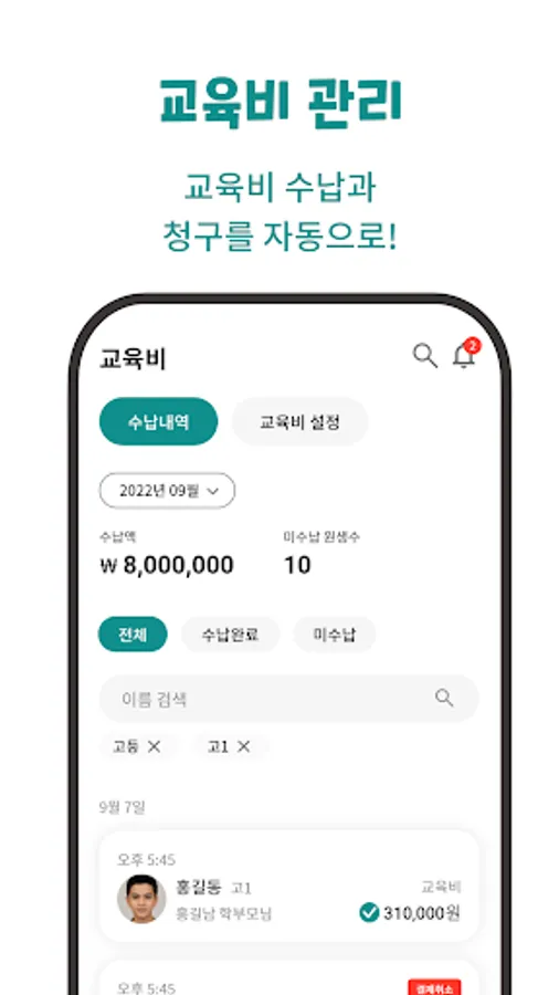 You can easily and conveniently perform school operation functions such as student, attendance, storage, and notification.