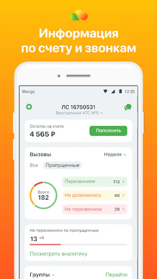 Already a client of MANGO OFFICE? Control your personal account balance, analyze call history and check missed calls - in your mobile personal account!