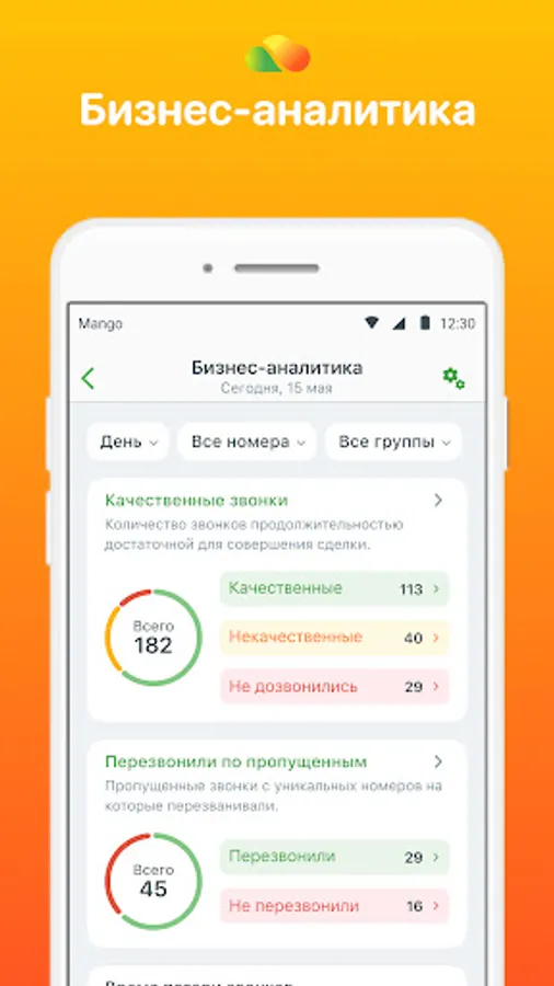 Useful information on received and missed calls - right on the home screen. Check which of the clients your employees have not called back! The application will send notifications about all such cases.