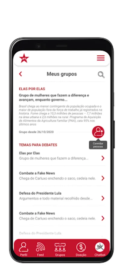 The package of services and information offered by the app facilitates your political performance and ensures a closer relationship between the PT and you!