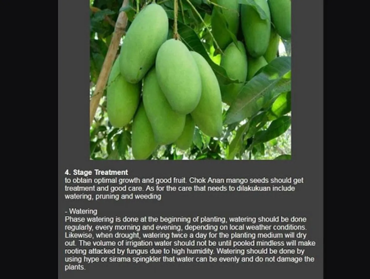 This application contains the correct way of mango cultivation, and can make quick mango fruit. Many of the tips that are in this application. Immediately download this application.
