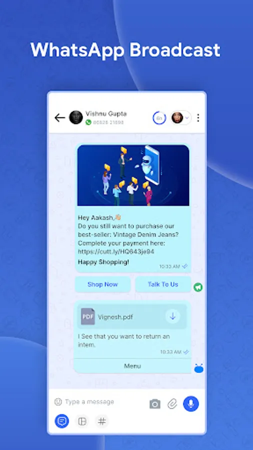 Schedule WhatsApp bulk broadcasts to targeted customer segments.
