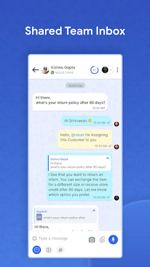 ✅ Quick replies via Canned responses & pre-approved WhatsApp templates
