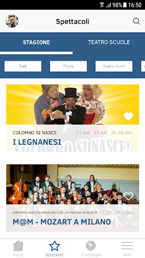 App registering, each user can create a custom Wish List according to his preferences, having at hand the interest of single events and be alerted to each their inception.