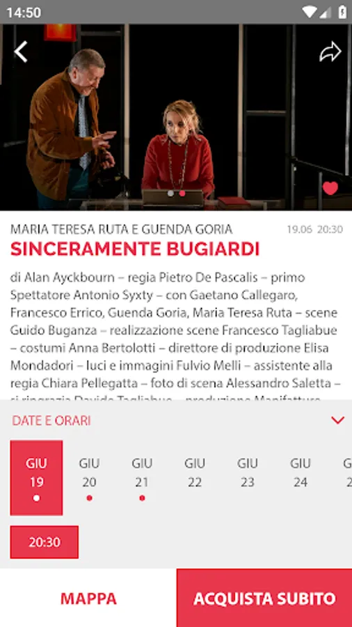 With the app you can always stay up to date, in real time, on all our activities, and you can quickly buy your tickets. You will also find information on season tickets, our theater schools and their courses, special projects, shows dedicated to the world of schools as well as promotions dedicated to app owners.