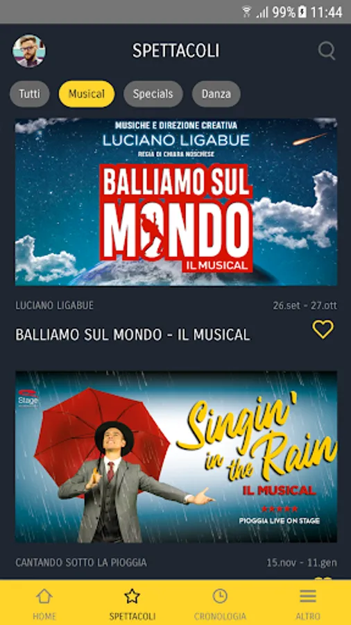 If you complete your registration you will have the unique opportunity to create your personalized WishList of events and shows that interest you most and be notified in time so as not to lose info and promotions dedicated!