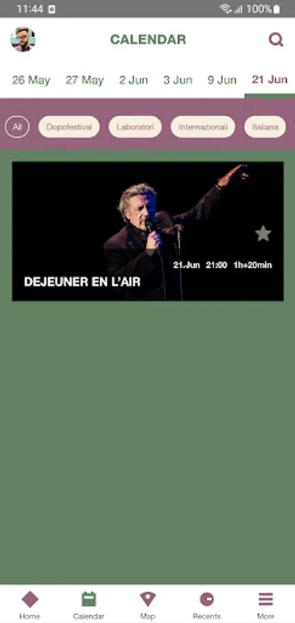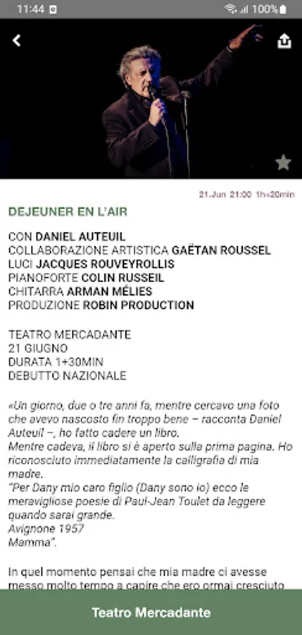 The daily calendar of the Festival will be always updated for each category so you can choose and read up on the events you are interested in. Through the App you can also book or buy the entrance ticket for each show.