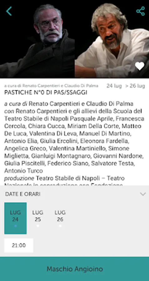 By downloading the APP Teatro Stabile di Napoli, the user will have the opportunity to easily consult all the shows and events of the theater, to access special dedicated promotions and purchase via APP by receiving the ticket directly via email on their smartphone!