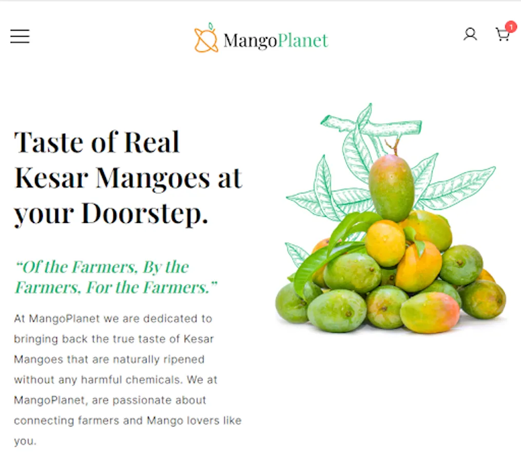 MangoPlanet is the Online Platform to Buy Original Kesar Mangoes straight from the fields. It is an Initiative by Jesar Farmer Producer Organization built with the motive to empower farmers and enhance their livelihood. MangoPlanet is a one stop shop for the freshest and most delicious Kesar mangoes from Jesar. An initiative that aims to help farmers get their deserved price through online mediums, while also providing our customers with the best quality mangoes straight from the farms.