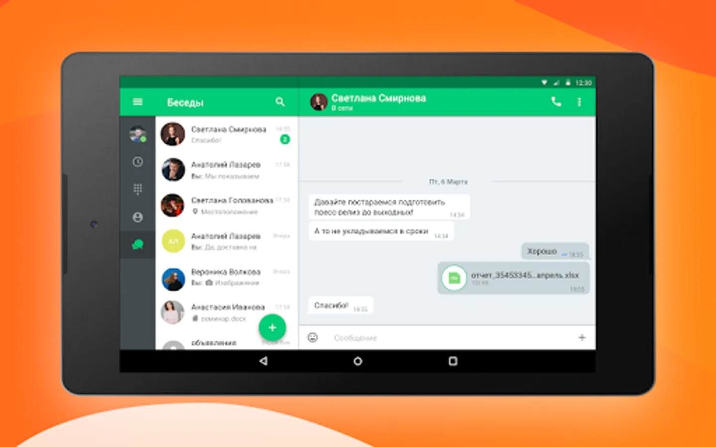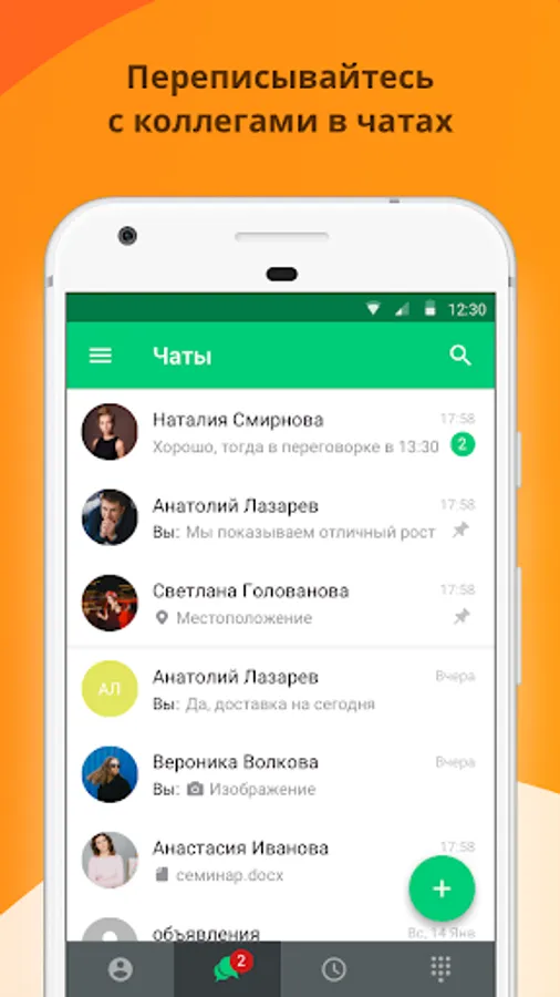 All contacts of colleagues are already in the business messenger (they are pulled from the Personal Account of the Virtual PBX MANGO OFFICE). Find any employee, check their accessibility status and contact them instantly.
