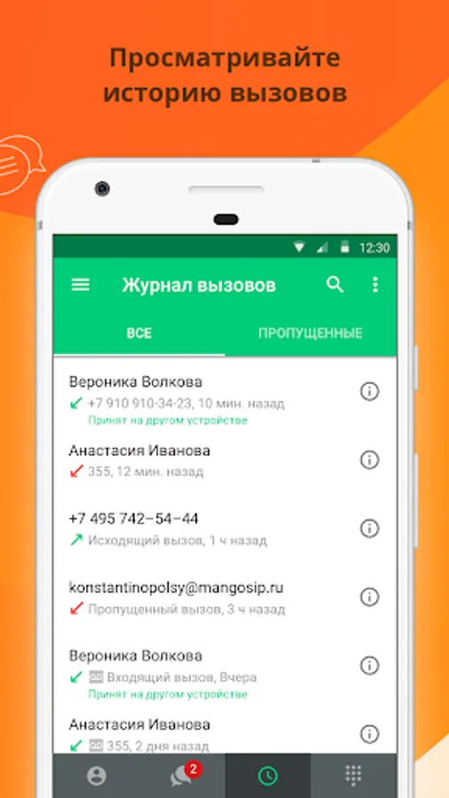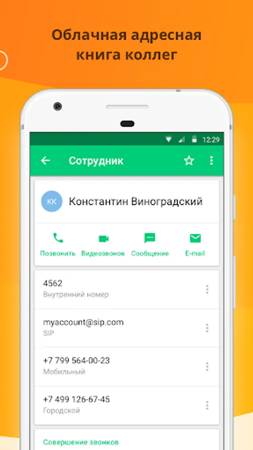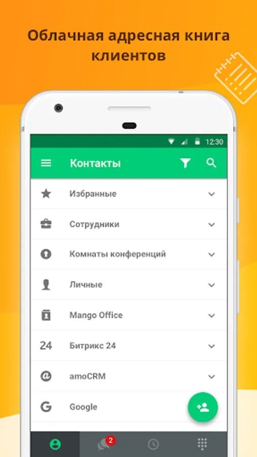 Cloud synchronization with CRM, Google address books, etc. Allows you to always understand which customer is calling you. Add new contacts to your address book and your colleagues will see them right away.