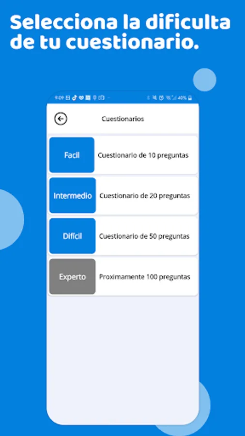 Los usuarios pueden personalizar sus exámenes, eligiendo la cantidad de preguntas y el nivel de dificultad según sus necesidades.