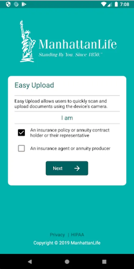 This app works well for both Agents and Policyholders. Go to https://easyupload.manhattanlife.com for more details.