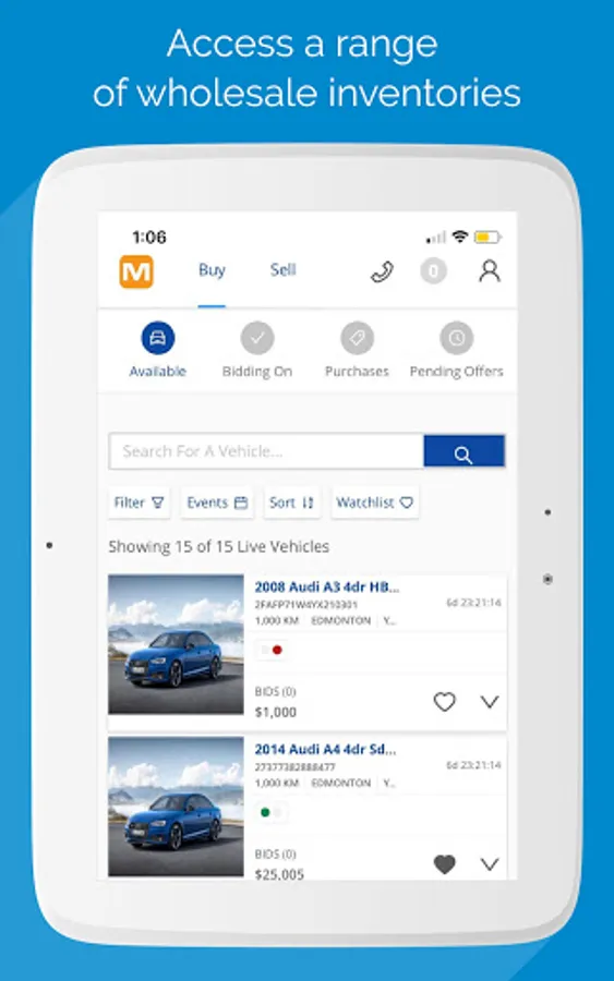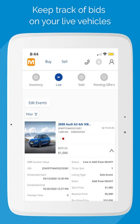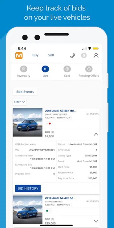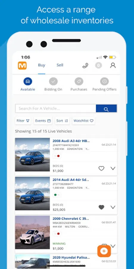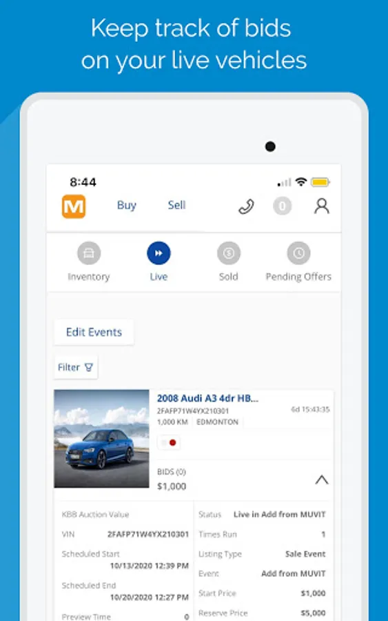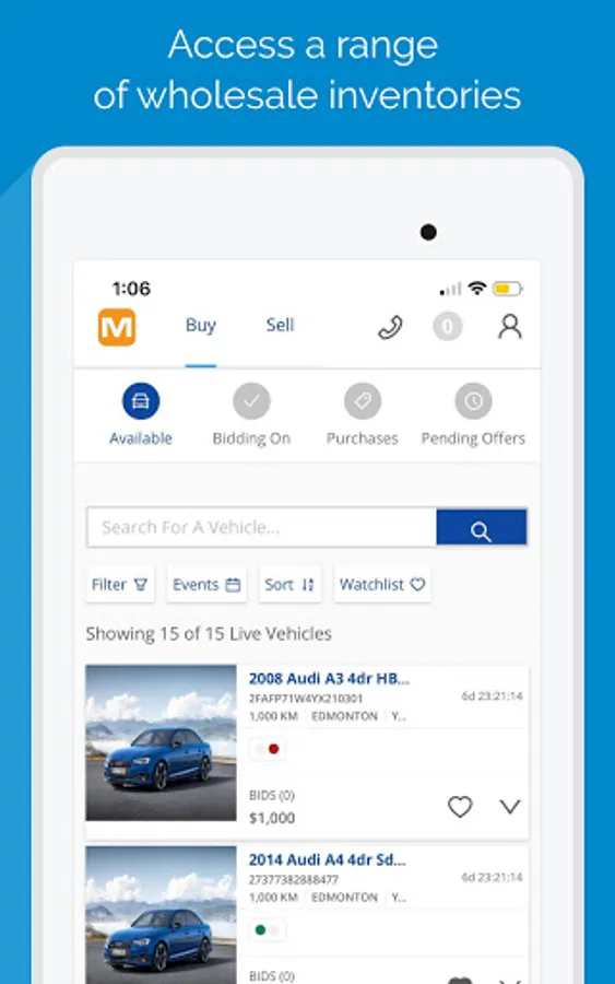 A powerful remarketing experience that removes the friction from buying and selling vehicles. MUVIT allows you to access wide variety of sales and bidding formats to choose from to fit your remarketing strategy. Add vehicles of your interests to watchlist so you can view them quickly and have visibility on bids.