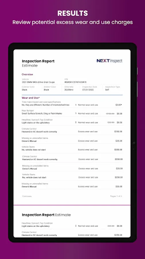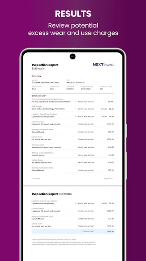 NEXTInspect puts the power of a professional vehicle inspector in your hands and allows you to perform a pre-term vehicle inspection on your leased vehicle prior to turn-in. Powered by the same innovative technology used by dealers at lease-end today, you will be able to examine your vehicle’s condition for any potential excess wear and use. At the end of the inspection, you’ll have an idea of what fees, if any, you might expect to pay and have the opportunity to address necessary repairs before returning the vehicle.