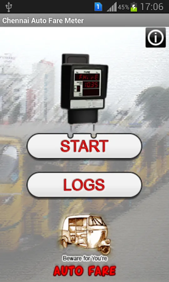 This application is very simple in nature. Once app is clicked it will come to a screen where passenger need to click "START" button. This button need to be clicked when the auto is hired. After that when auto is reached the destination click "STOP" button. The fare will be shown on the screen. To view past details click LOGS button in the home screen.