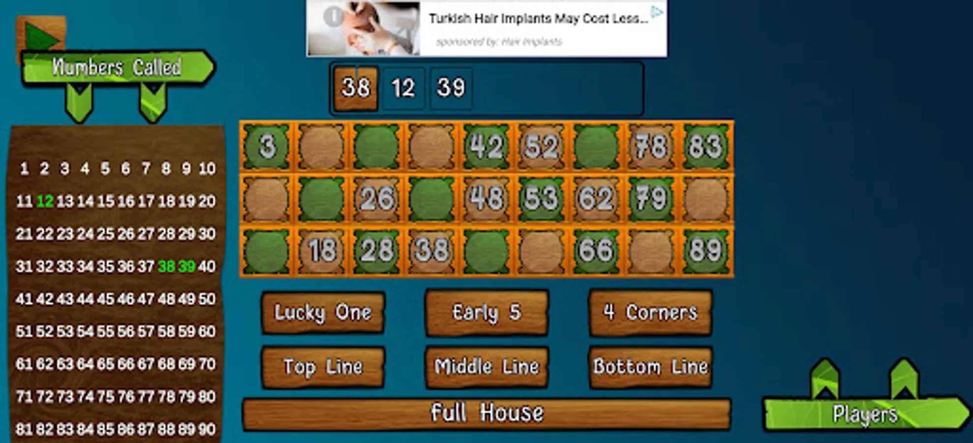 When a number called is present in the ticket, players can mark/unmark that number by simple tapping it