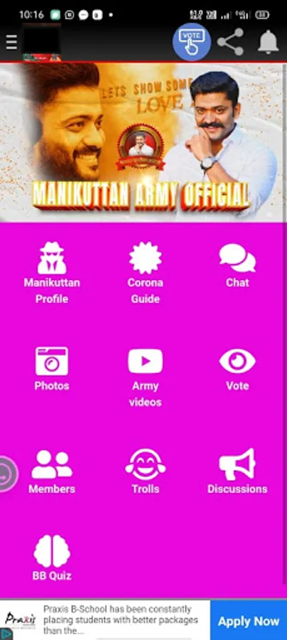 Manikuttan Bigg Boss seson 3 Ofiicial army app