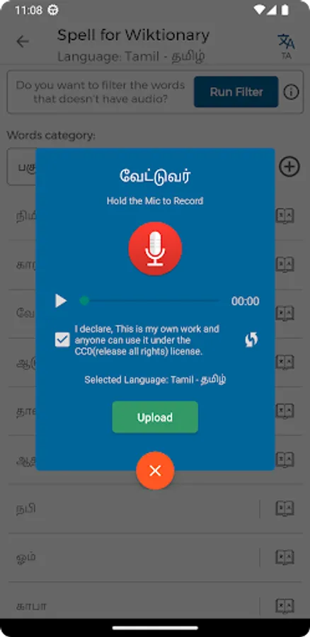 Spell For Wiktionary - Record & upload audio for the list of words from Wiktionary category.