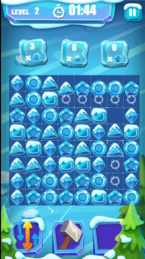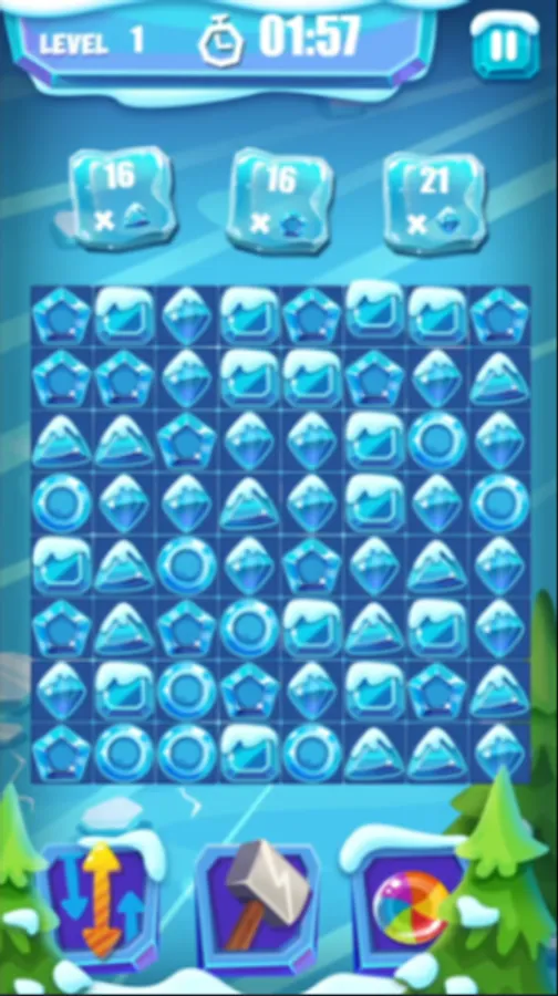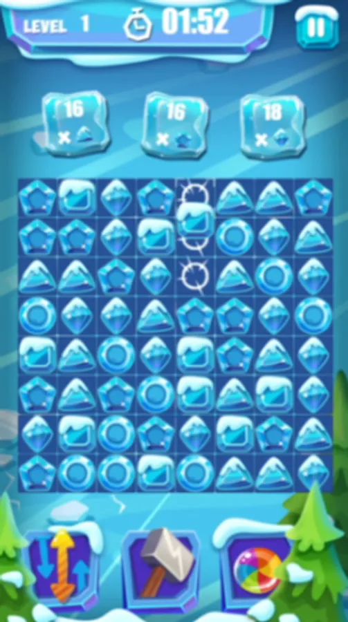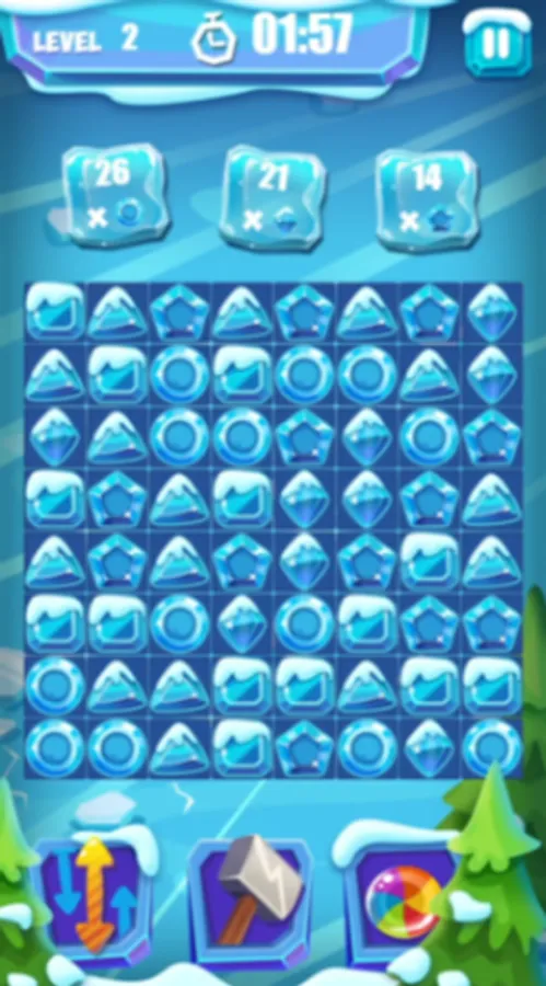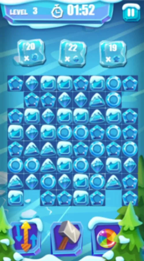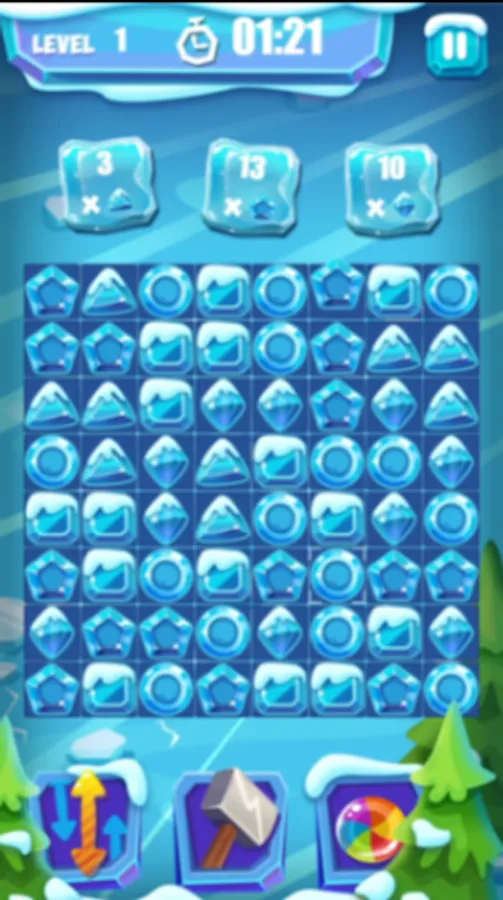 In the ice candy game, your goal is to match 3 candies of the same shape to collect the specified number of candies within the given time. The snow candies come in a variety of shapes, including squares, circles, pentagons, triangles, and diamonds. To complete each level successfully, you must focus on matching the shapes that you are asked to collect.