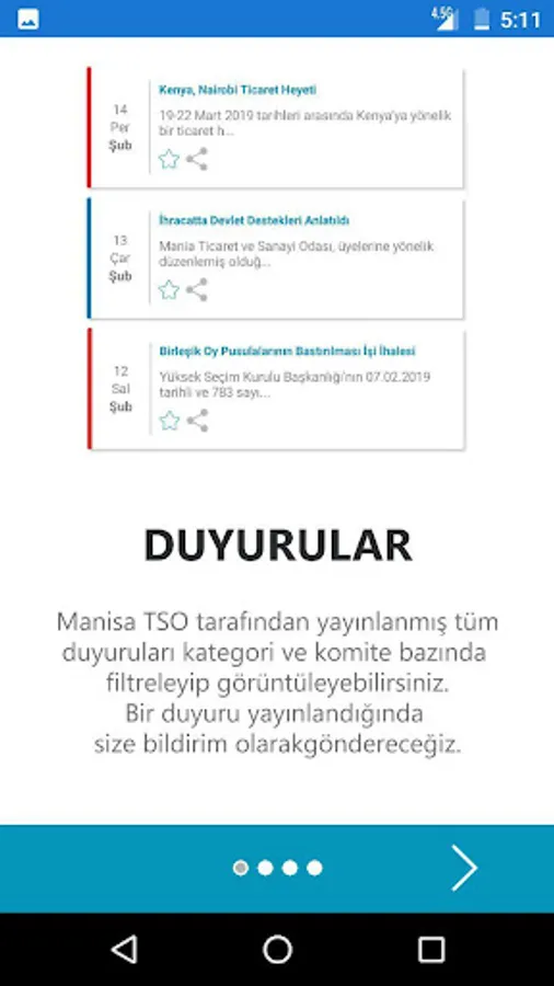 Manisa Chamber of Commerce and Industry is the official mobile application. With this application you can use for free without membership, you can personalize our announcements that we send to our members with push notification, subject to titles and frequency of delivery, and be aware of our trainings.