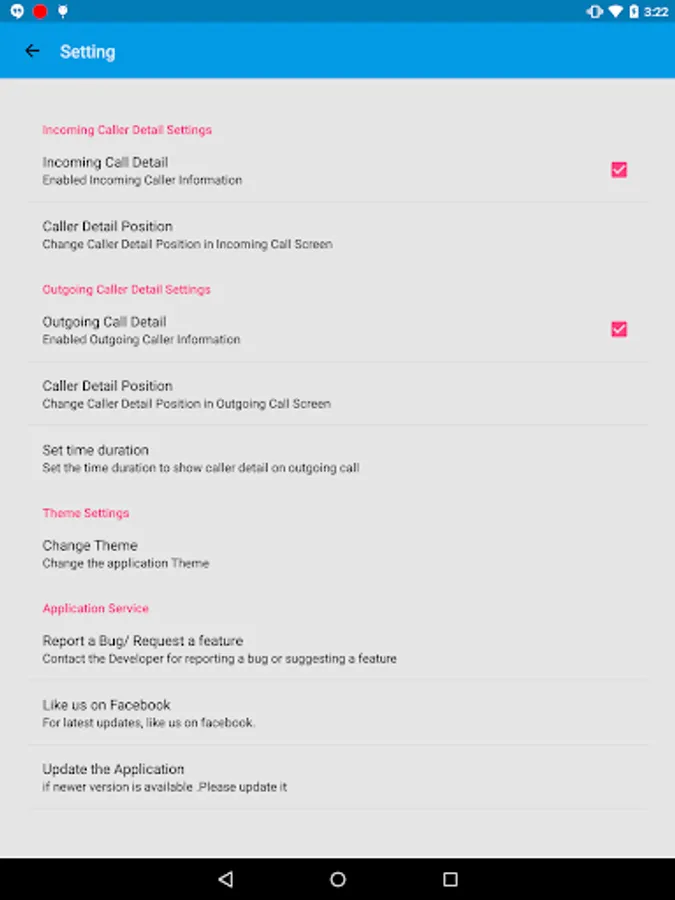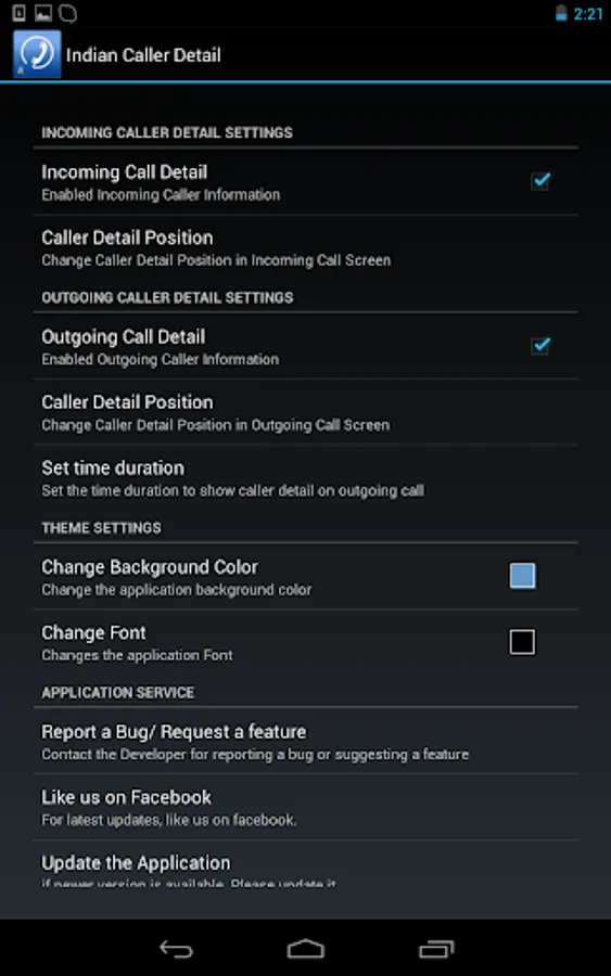 - Application shows caller's detail when mobile is ringing (On both incoming and outgoing call).